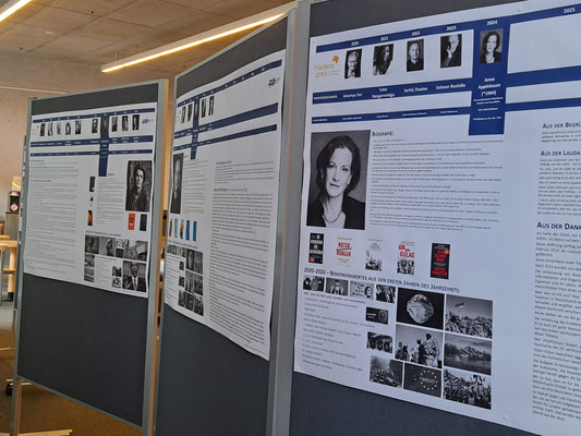 biografischer Daten vorgestellt. Informationen über historische Ereignisse aus der Zeit seit 1950 ergänzen die Schautafeln. Zudem sind Publikationen der Preisträger:innen im Rahmen einer